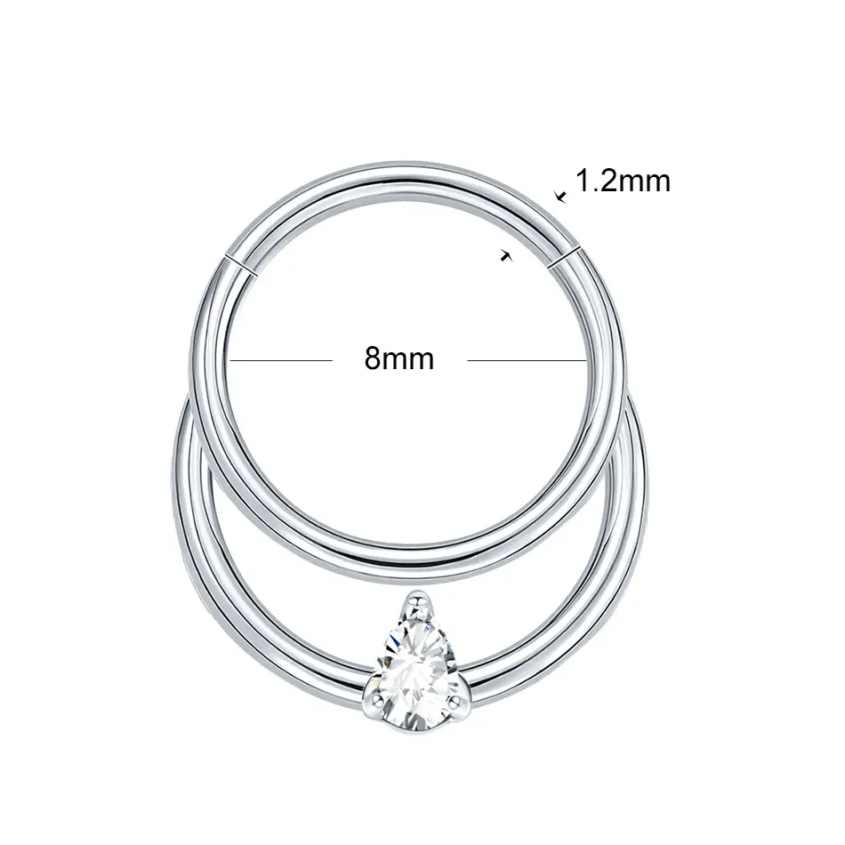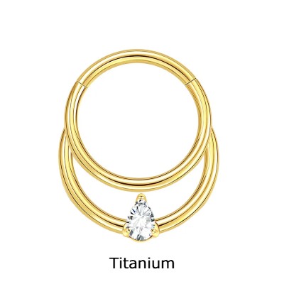 Argola de Titânio para septo com efeito duplo com zirconia gota -TF699