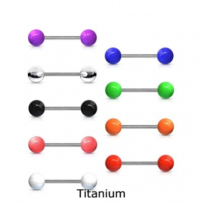 Joía de Titânio, barra barbell para língua com bolas de acrílico T23BAS
