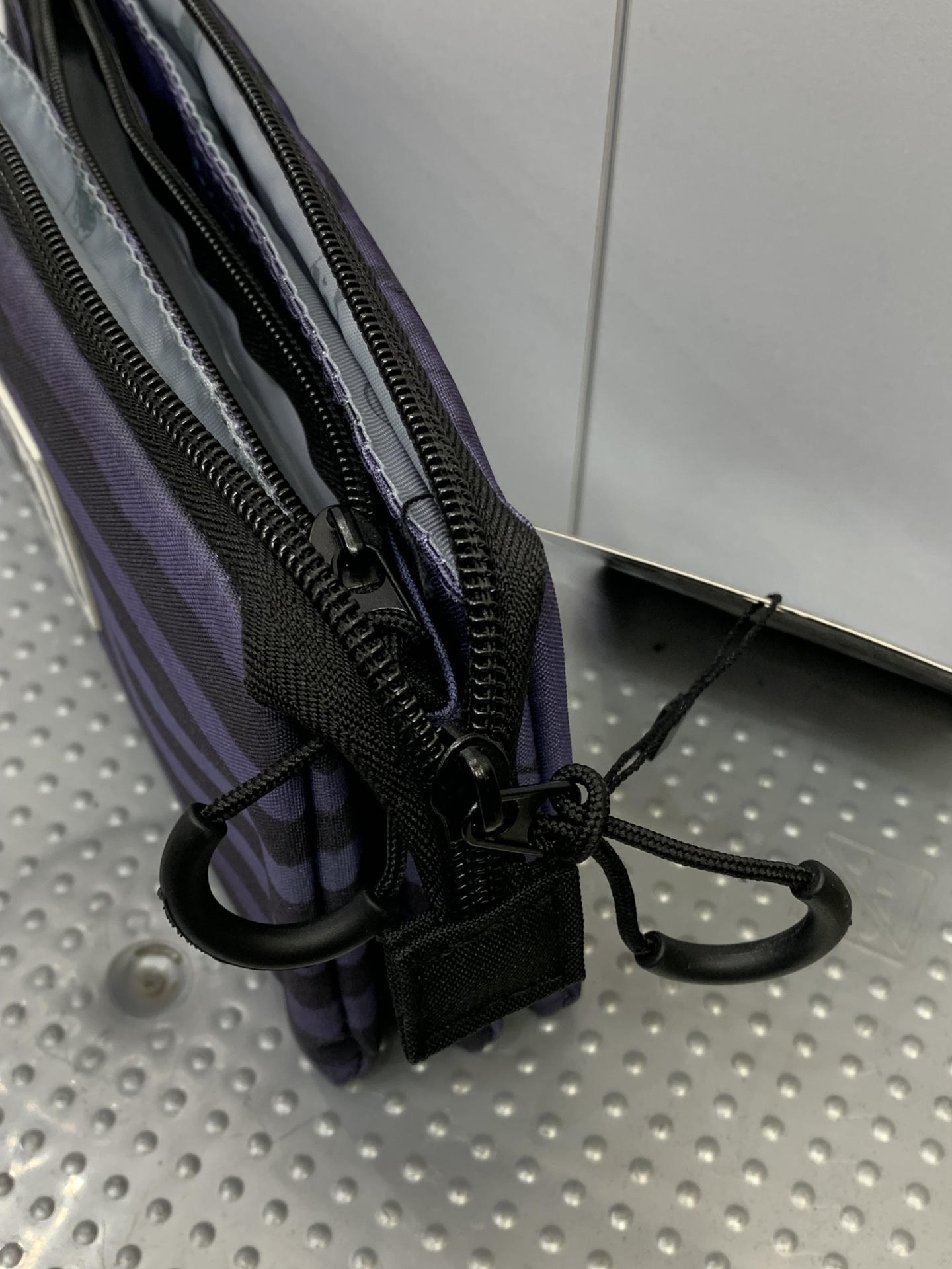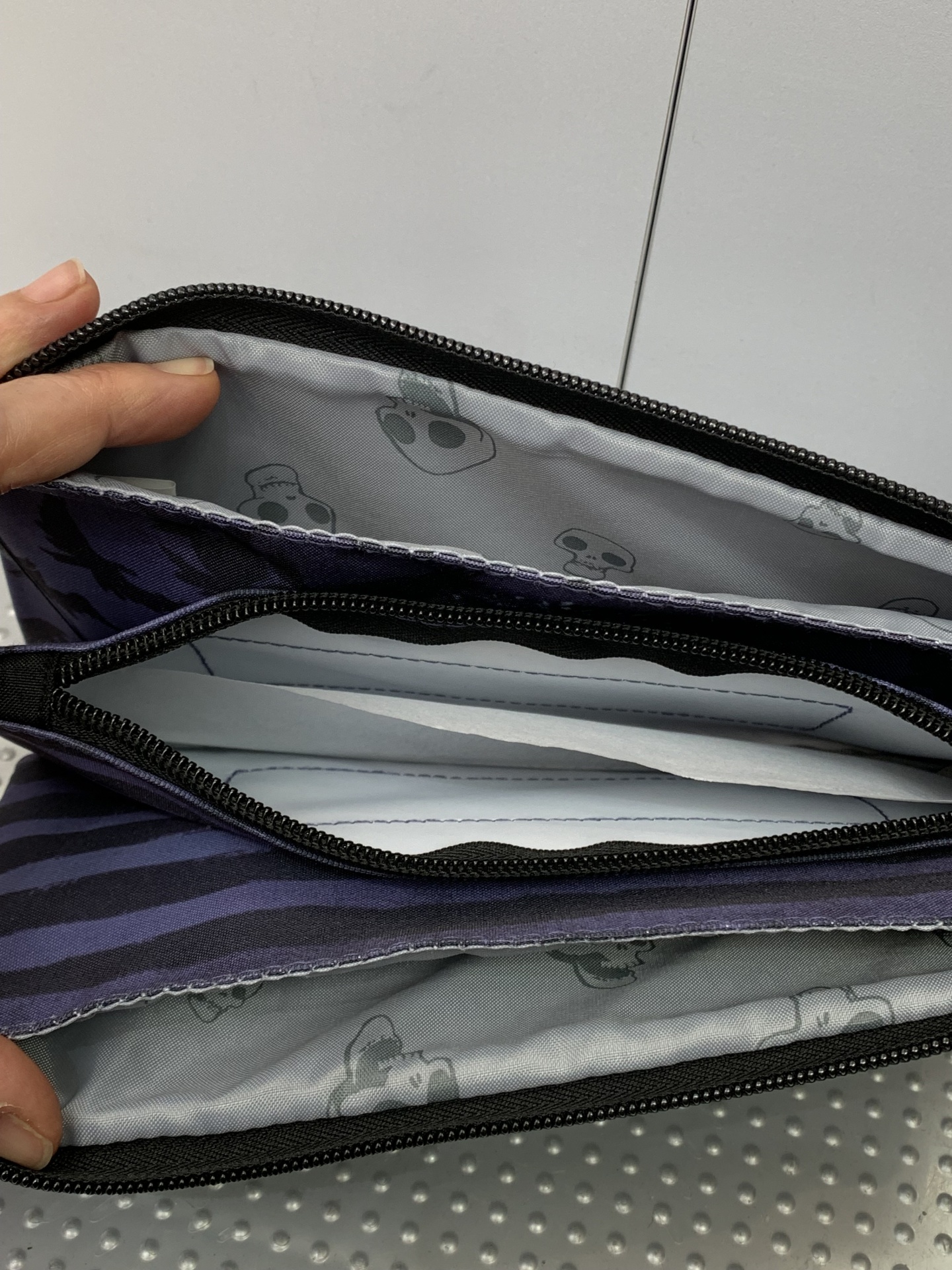 Este estojo tem 3 compartimentos, 2 dos quais abrem no mesmo fecho