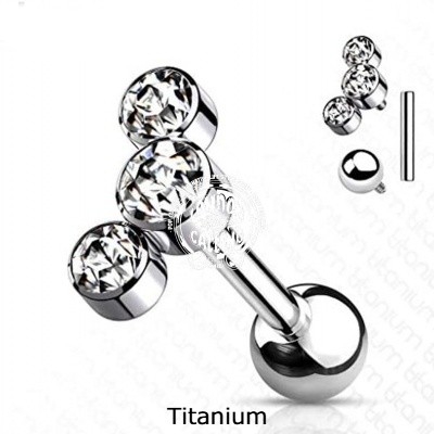 Jóia -barra com bola em Titanio com 3 cristais forma redonda TIJ06