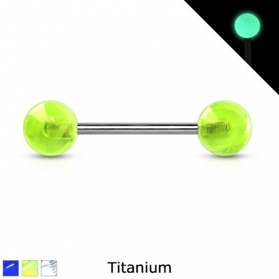 Joía de Titânio, barra barbell para língua com bolas de acrílico T23BG Brilha no escuro