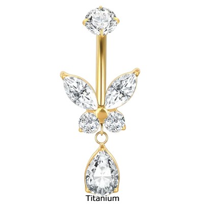 Joia de Titânio para umbigo com borboleta e pendente em zircónia TN055 - FC400