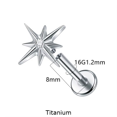 Joia labret em Titânio com estrela radiante e cristal TC297
