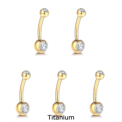 Joia umbigo Titanio dourado com 2 zirconias TN005 mini PREÇO POR UNIDADE