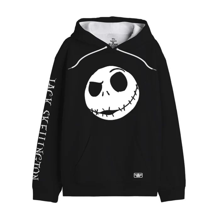 Camisola de capuz com bolso canguru, cardada por dentro. Print na frente e na manga
